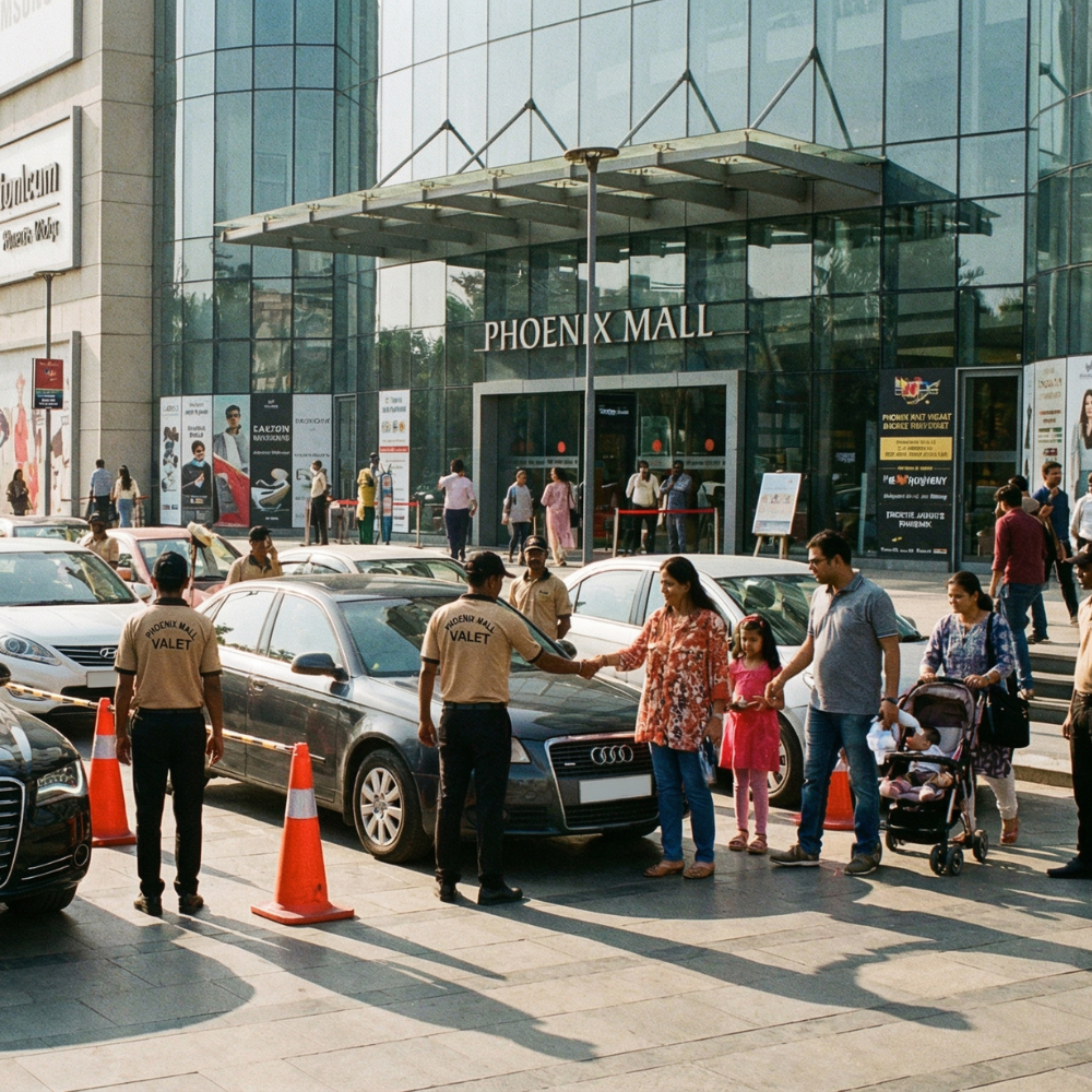 Efficient valet services for shopping malls, multiplexes, and commercial complexes.